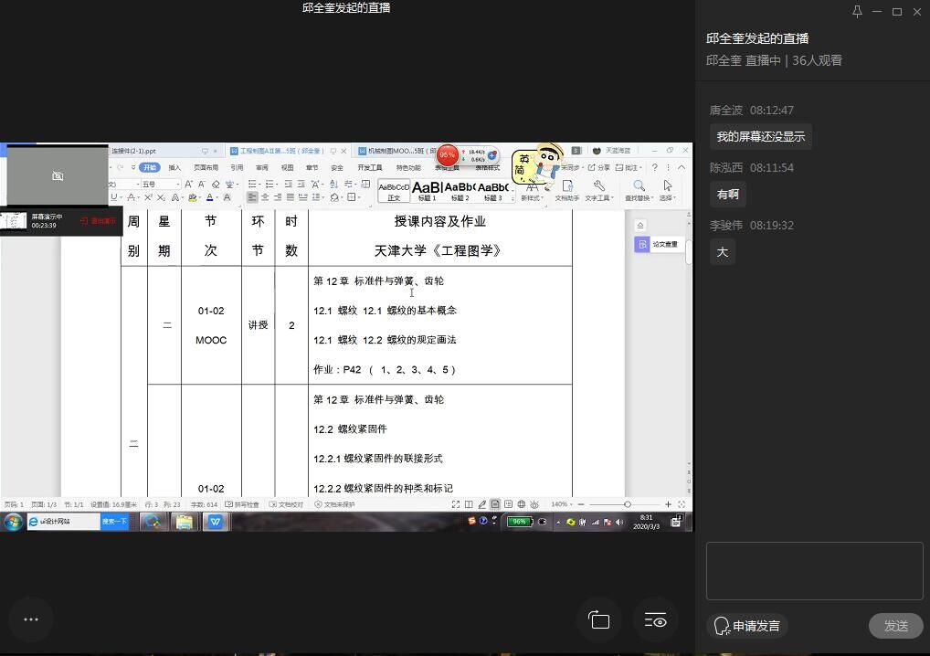 3月2号为网络授课的第一天,学院院领导和校院两级教学督导成员全部进入了所有老师的授课平台进行观摩,各课程开播基本顺利,网络条件良好,学生反响热烈。课程结束后,各位老师也在学院群分享了授课的情况和经验,确立了进一步改进的方向。
